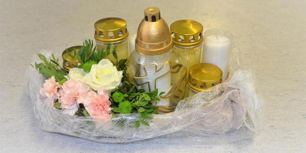 SarggesteckeTrauerkränzeUrnenschmuck Kerzenteller